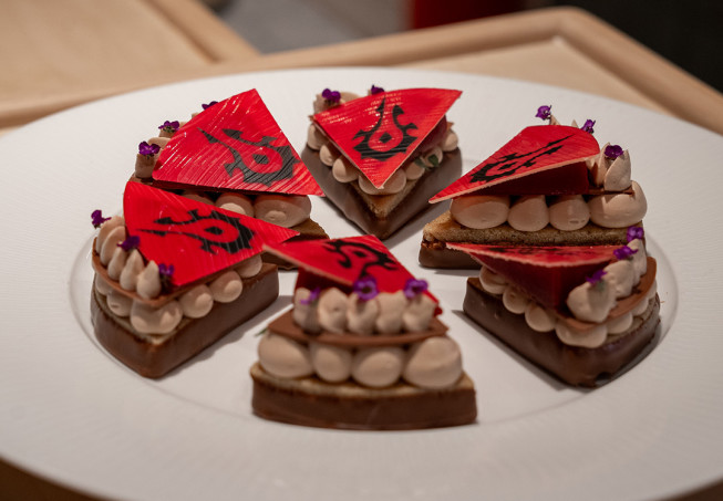 En skapelse som representerar ett nyckelverktyg för spel — musen! Under ett krispigt mandelskal döljer sig syran från Callebaut Sao Thomé tillsammans med Maraschino-körsbär. För att matcha alla smaker använder kocken Cacao Barry Zéphyr Caramel.
